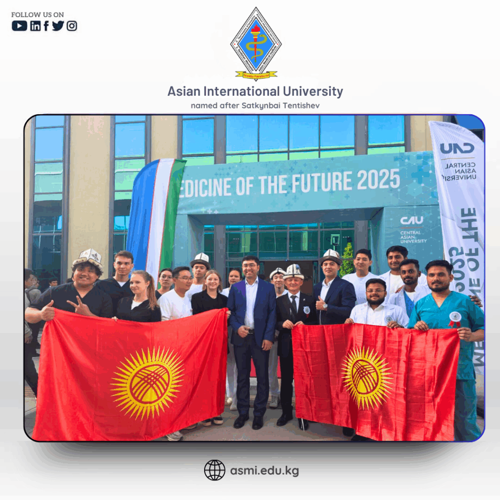 46 teams, 12 countries, and world-class challenges — the students of S. Tentishev Asian International University (AIU) proudly represented Kyrgyzstan at the International Olympiad “Medicine of the Future – 2025,” held in Tashkent, Uzbekistan.