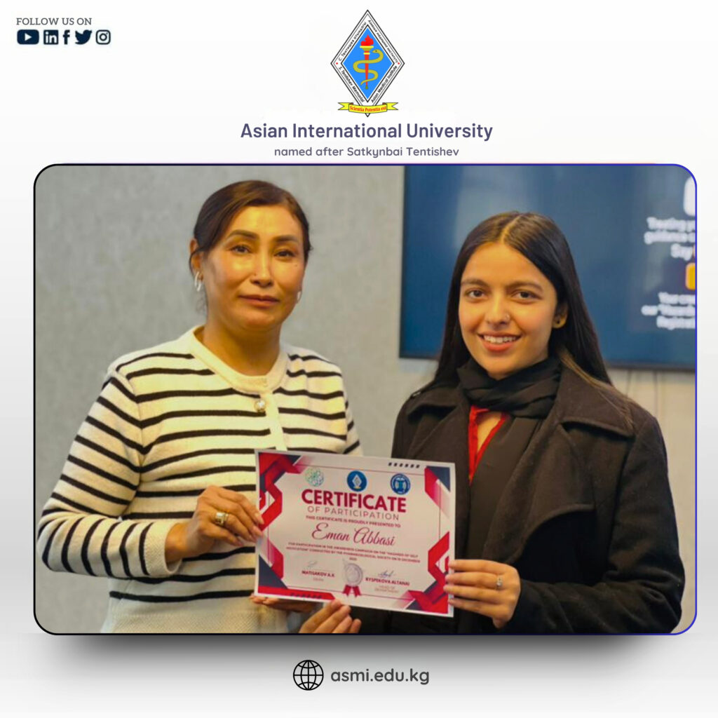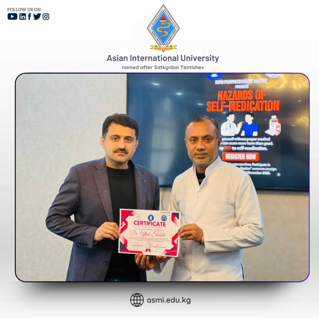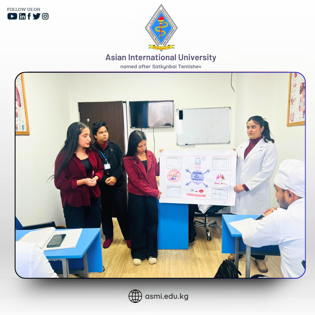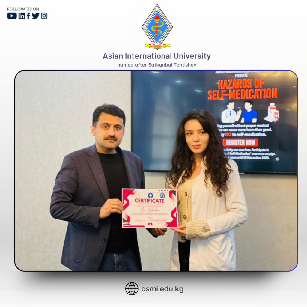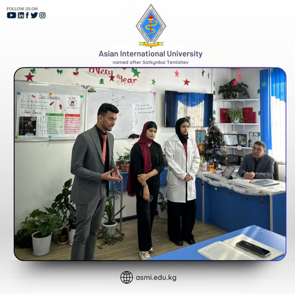 Following a brief promotional drive, participating students visited different classrooms across the institute to raise awareness about the dangers of self-medicating without proper medical consultation. The campaign particularly addressed the local context of Kyrgyzstan, where frequent cold weather often leads studentsโespecially international studentsโto self-treat symptoms such as headaches, fever, and flu, sometimes overlooking underlying medical conditions.