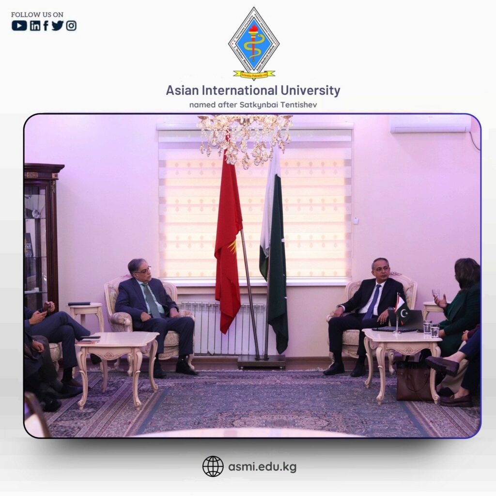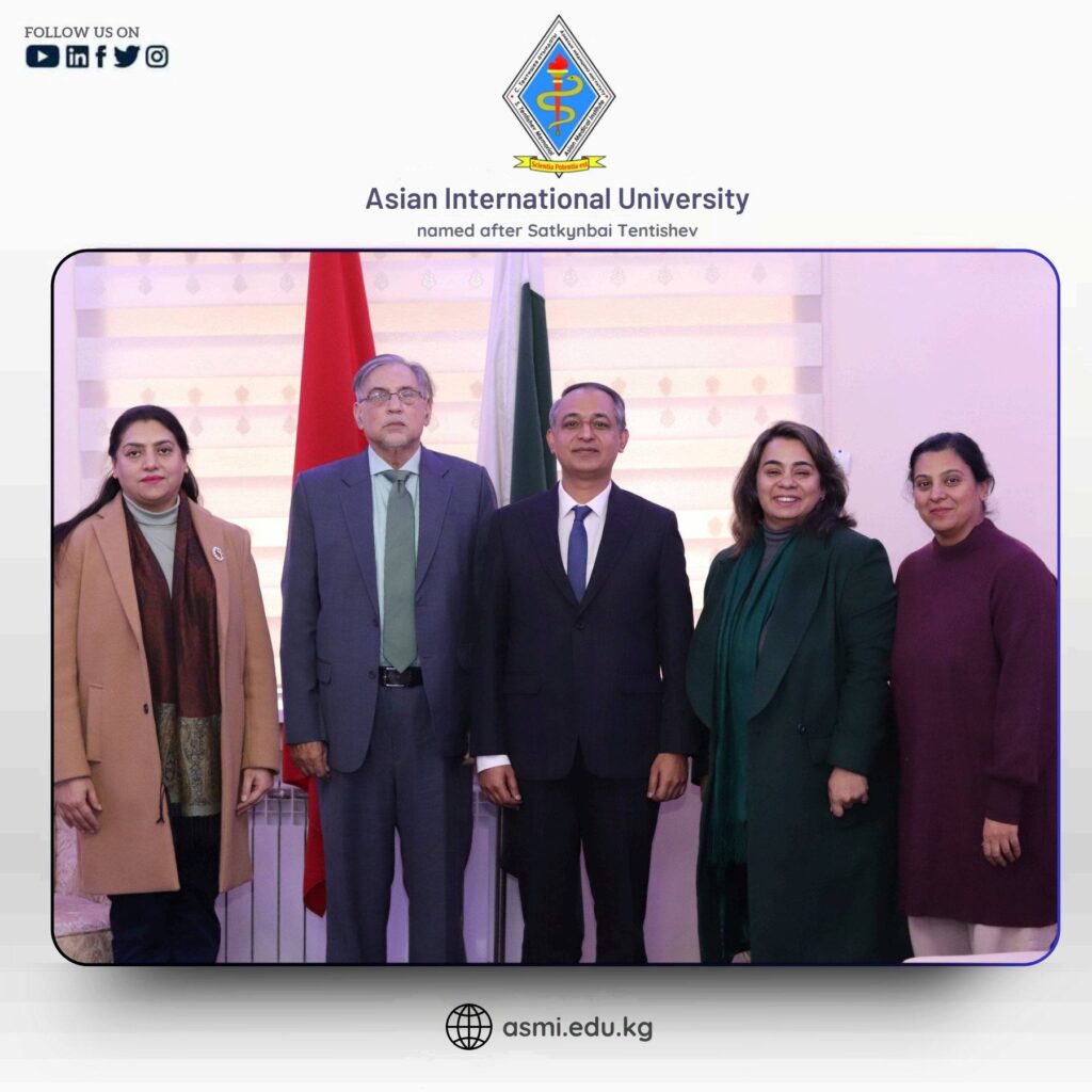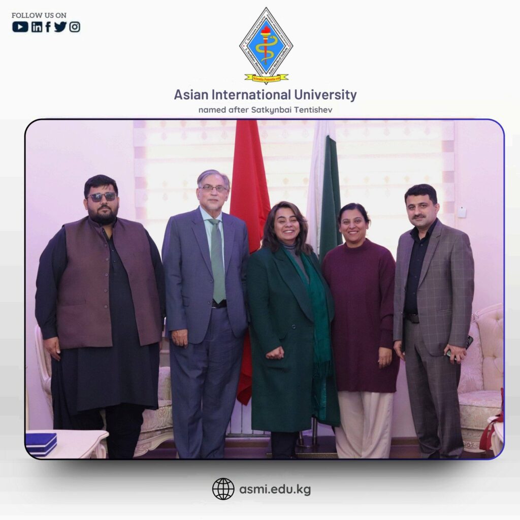On 16 December 2025, a distinguished delegation from ๐๐ธ๐ต๐๐ฎ๐ฟ ๐ฆ๐ฎ๐ฒ๐ฒ๐ฑ ๐ ๐ฒ๐ฑ๐ถ๐ฐ๐ฎ๐น ๐ฎ๐ป๐ฑ ๐๐ฒ๐ป๐๐ฎ๐น ๐๐ผ๐น๐น๐ฒ๐ด๐ฒ held a formal meeting at the ๐๐บ๐ฏ๐ฎ๐๐๐ ๐ผ๐ณ ๐ฃ๐ฎ๐ธ๐ถ๐๐๐ฎ๐ป ๐ถ๐ป ๐๐ถ๐๐ต๐ธ๐ฒ๐ธ, ๐๐๐ฟ๐ด๐๐๐๐๐ฎ๐ป, with His Excellency ๐ ๐ฟ ๐๐น๐๐ฎ๐บ๐ฎ๐๐ต ๐ช๐ฎ๐๐ถ๐ฟ ๐๐ต๐ฎ๐ป, ๐๐บ๐ฏ๐ฎ๐๐๐ฎ๐ฑ๐ผ๐ฟ ๐ผ๐ณ ๐ฃ๐ฎ๐ธ๐ถ๐๐๐ฎ๐ป ๐๐ผ ๐๐ต๐ฒ ๐๐๐ฟ๐ด๐๐ ๐ฅ๐ฒ๐ฝ๐๐ฏ๐น๐ถ๐ฐ , along with the ๐๐ฒ๐ฝ๐๐๐ ๐๐ฒ๐ฎ๐ฑ ๐ผ๐ณ ๐ ๐ถ๐๐๐ถ๐ผ๐ป, ๐ ๐ฟ ๐ ๐ฎ๐ฟ๐๐ฒ๐ป ๐๐น๐ฒ๐ ๐๐๐ฎ๐๐ต. The meeting was conducted as part of a collaborative academic and diplomatic bridge between Kyrgyzstan and Pakistan, facilitated through the ๐ฉ๐ถ๐ฐ๐ฒ ๐ฅ๐ฒ๐ฐ๐๐ผ๐ฟ ๐ณ๐ผ๐ฟ ๐๐ป๐๐ฒ๐ฟ๐ป๐ฎ๐๐ถ๐ผ๐ป๐ฎ๐น ๐๐ณ๐ณ๐ฎ๐ถ๐ฟ๐ ๐๐๐ถ๐ฎ๐ป ๐๐ป๐๐ฒ๐ฟ๐ป๐ฎ๐๐ถ๐ผ๐ป๐ฎ๐น ๐จ๐ป๐ถ๐๐ฒ๐ฟ๐๐ถ๐๐ ๐๐๐ฟ๐ด๐๐๐๐๐ฎ๐ป, ๐๐ฟ ๐๐ฎ๐บ๐ถ๐ฟ ๐๐ฎ๐๐ฎ๐.