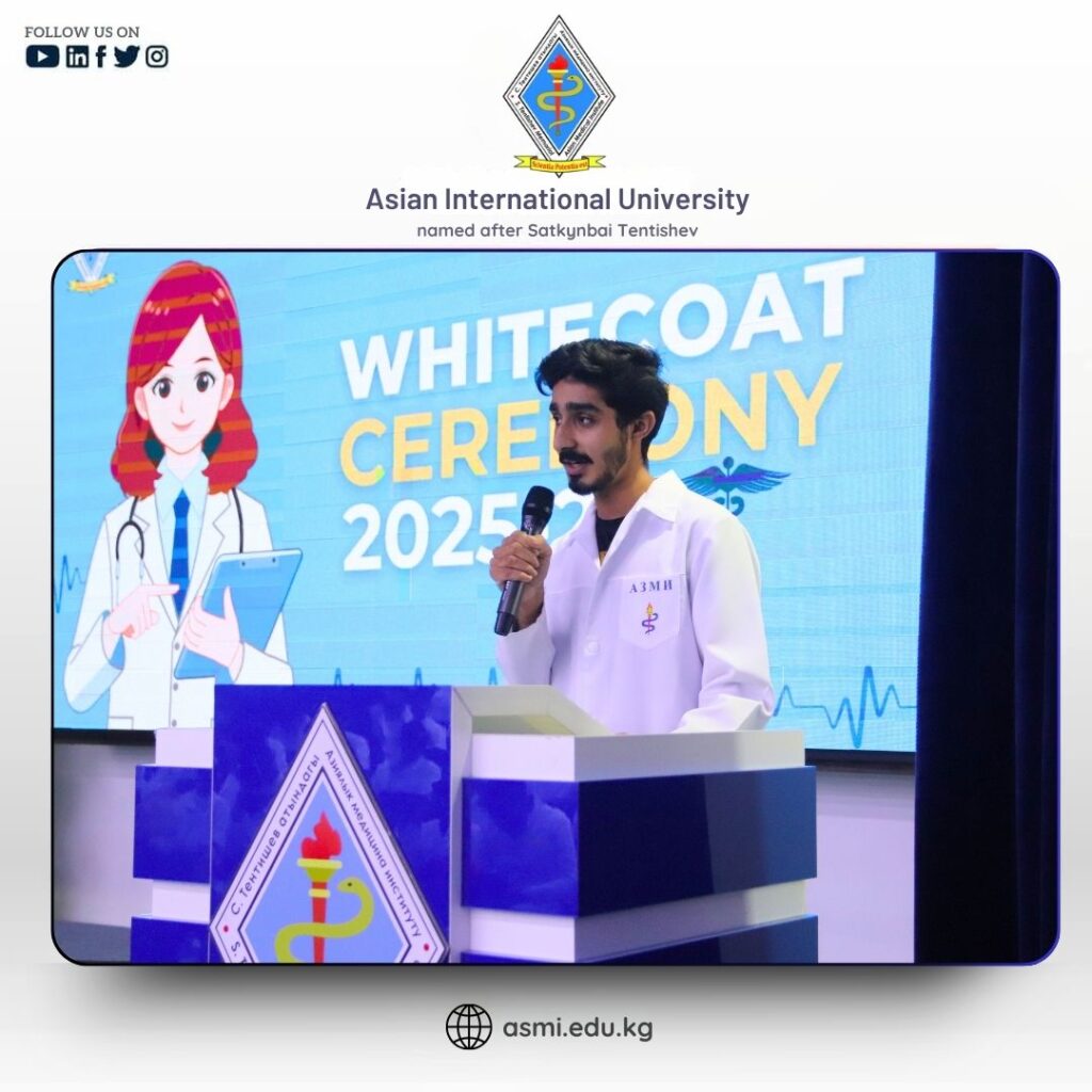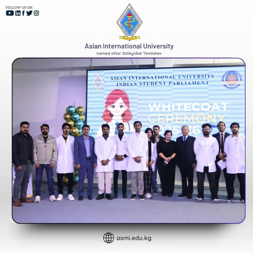 On 02 December 2025, the White Coat Ceremony for our fresher students was proudly organized at Asian International University, Kyrgyzstan. The event was graced by the ๐ฅ๐ฒ๐ฐ๐๐ผ๐ฟ ๐ฃ๐ฟ๐ผ๐ณ. ๐ฆ๐ฒ๐น๐ฝ๐ถ๐ฒ๐, ๐ฉ๐ถ๐ฐ๐ฒ ๐ฅ๐ฒ๐ฐ๐๐ผ๐ฟ ๐๐ฟ. ๐ฃ๐ฟ๐ฎ๐๐ต๐ฎ๐ป๐ ๐ ๐ถ๐๐ต๐ฟ๐ฎ, ๐ฉ๐ถ๐ฐ๐ฒ ๐ฅ๐ฒ๐ฐ๐๐ผ๐ฟ ๐ณ๐ผ๐ฟ ๐๐ป๐๐ฒ๐ฟ๐ป๐ฎ๐๐ถ๐ผ๐ป๐ฎ๐น ๐๐ณ๐ณ๐ฎ๐ถ๐ฟ๐ ๐๐ฟ. ๐๐ฎ๐บ๐ถ๐ฟ ๐๐ฎ๐๐ฎ๐, and respected faculty members, whose presence made the ceremony meaningful and inspiring.