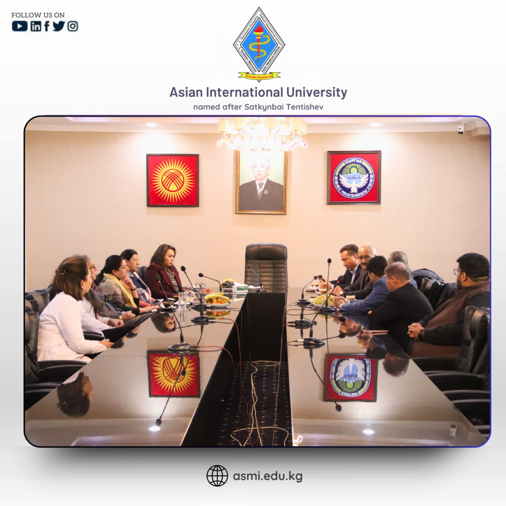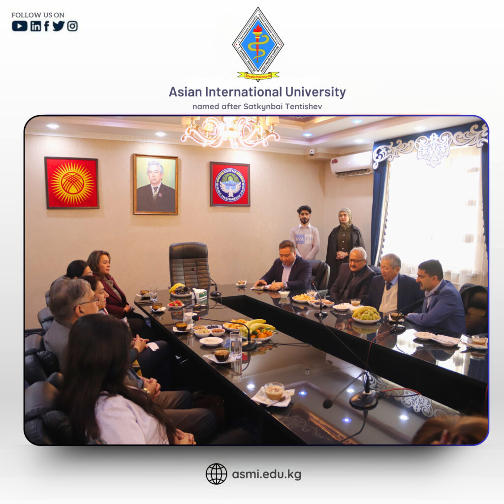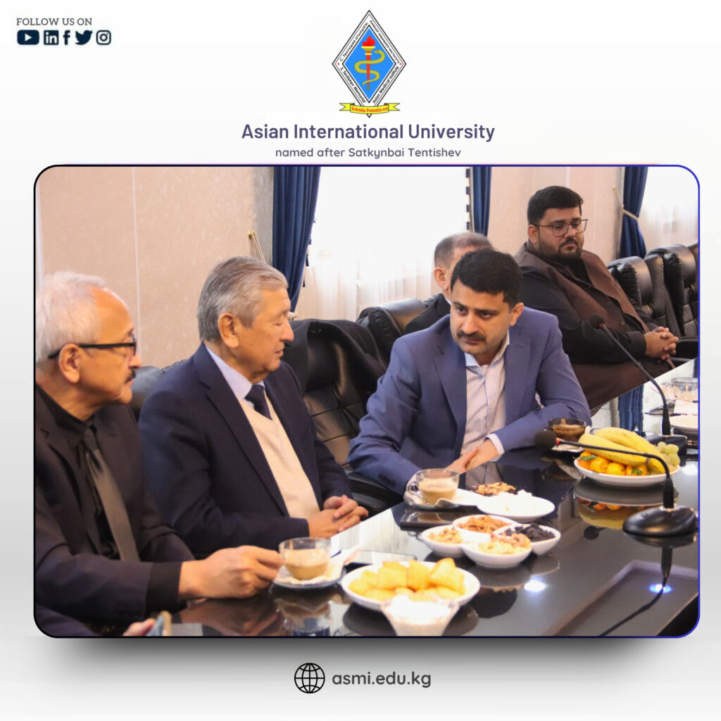 On 12 December 2025, 𝗔𝘀𝗶𝗮𝗻 𝗜𝗻𝘁𝗲𝗿𝗻𝗮𝘁𝗶𝗼𝗻𝗮𝗹 𝗨𝗻𝗶𝘃𝗲𝗿𝘀𝗶𝘁𝘆 𝗻𝗮𝗺𝗲𝗱 𝗮𝗳𝘁𝗲𝗿 𝗦𝗮𝘁𝗸𝘆𝗻𝗯𝗮𝗶 𝗧𝗲𝗻𝘁𝗶𝘀𝗵𝗲𝘃, 𝗞𝘆𝗿𝗴𝘆𝘇𝘀𝘁𝗮𝗻, had the distinguished honor of welcoming a respected delegation from 𝗔𝗸𝗵𝘁𝗮𝗿 𝗦𝗮𝗲𝗲𝗱 𝗠𝗲𝗱𝗶𝗰𝗮𝗹 𝗮𝗻𝗱 𝗗𝗲𝗻𝘁𝗮𝗹 𝗖𝗼𝗹𝗹𝗲𝗴𝗲, 𝗟𝗮𝗵𝗼𝗿𝗲, 𝗣𝗮𝗸𝗶𝘀𝘁𝗮𝗻. The visit was marked by great enthusiasm, academic goodwill, and a shared vision for excellence in medical education and international collaboration.