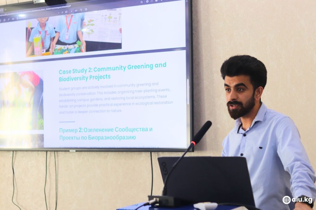 On 7th April 2026, the Universityโ€™s Student Parliament hosted a presentation session together with ILIMKYZ participants Fatmanur Mansurova and Nelya Ibragimova. The session focused on strengthening cooperation in promoting environmental awareness among youth, launching joint ecological initiatives, and engaging students in practical, city-level environmental projects.